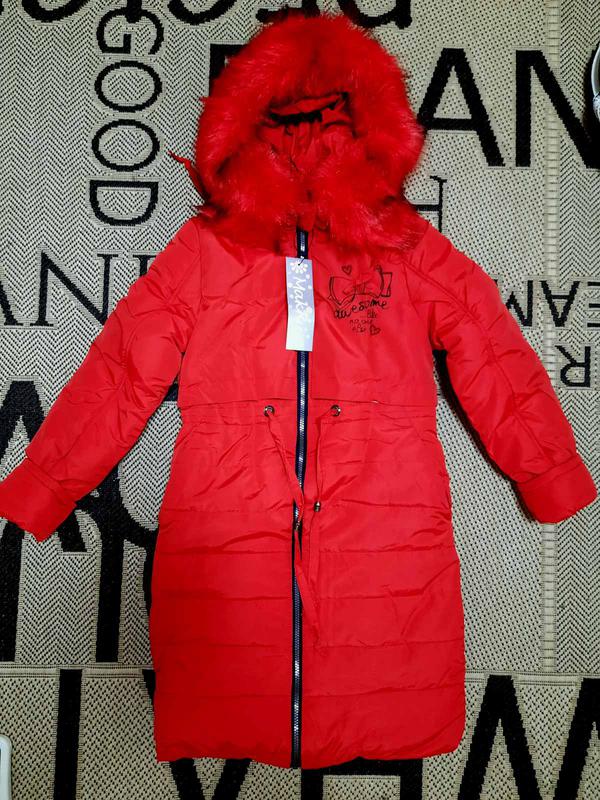 Куртка відмінної якості матеріалу, фурнітури і пошиття! Утеплювач: синтепон. Зовнішній матеріал : щільний водонепроникний плащівка. Підкладка: штучний хутро. Хутро на капюшоні штучний. На рукавах манжети (можна відвернути). Заміри: Розмір 146 - довжина 85 см, рукав від плеча 53/57 см(можна відвернути) , п/про грудей 42 см Розмір 152 - довжина 89 см, рукав від плеча 57/62, п/про грудей 45 см Розмір 158 - довжина 91 см, рукав від плеча 58/63 см, п/про грудей 46.5 см Розмір 164 - довжина 93 см, рукав від плеча 59/64 см, п/про грудей 47.5
