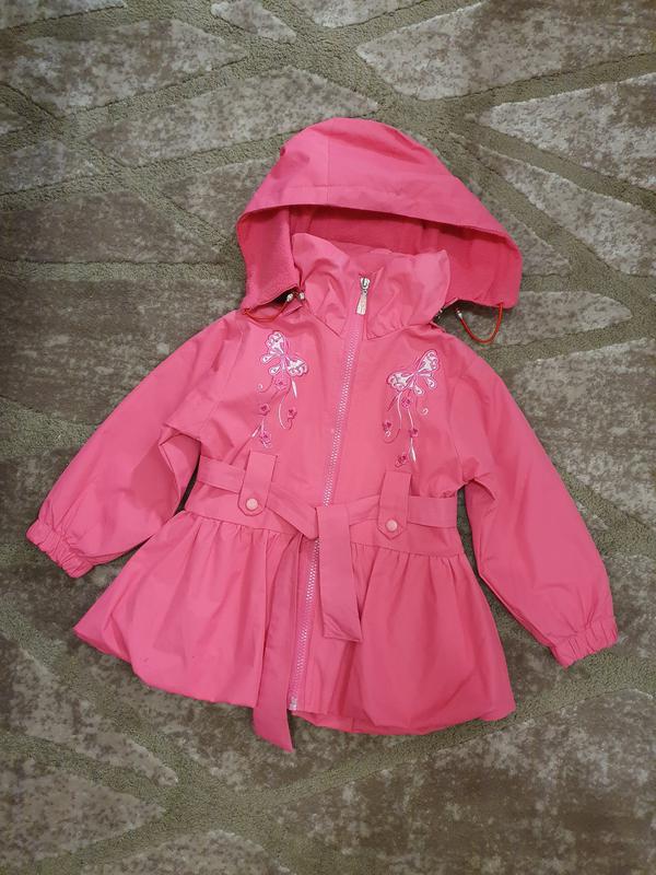 Куртка весна/осень, в отличном состоянии. На 1,5-3 года (104 см). Материал: плотный хлопок/плащевка, подклад - флис. Капюшон на молнии. Замеры: длинна 46 см, ширина 33-34 см, рукав 34 см. Один маленький нюанс, несколько точек от одуванчиков, есть на фото. Возможна продажа вместе с шапочками. Цена 50 грн./шт.