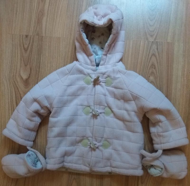 Куртка ,12 мес.,ПОГ 32 см,рукав от горловины 34 см,длина по спинке 36 см.Верх флис,наполнитель синтепон,подкладка трикотаж.Состояние хорошее.