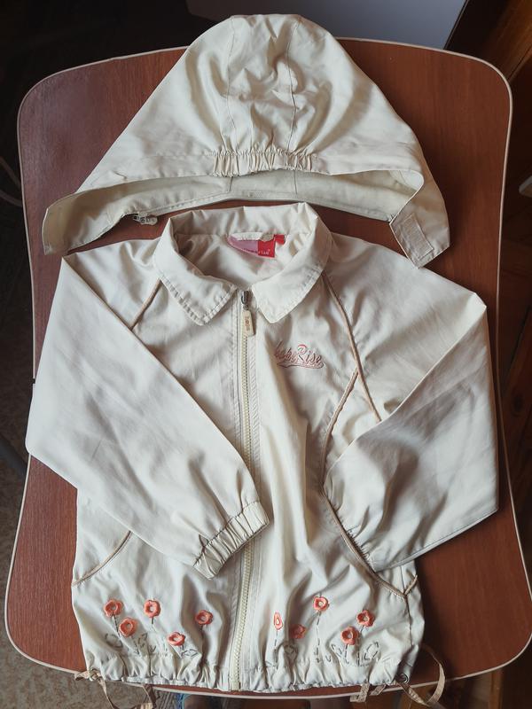лёгкая на трикотажной подкладке боковые карманы съёмный капюшон внизу утяжка веревки красивая вышивка рукав реглан 49 см внизу на резинке длина 49 под рукавами 37