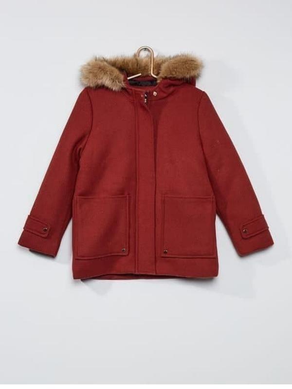 Куртка/жакет з капішоном, у складі 20% шерсть, зашпиляється на замок, є планка на кнопочки, спереду дві кишені, капішон з хутром ✔вік 10 років, зріст 138-143 см Півобхват грудей 43см, від пахв і до низу 37см, довжина від плеча і до низу 58см, довжина рукава 50 см, довжина посередині по спині 58 см, плечі 34см 💬осінь/весна 🏷kiabi
