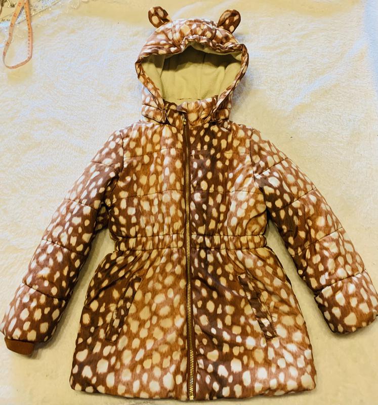 Курточка Демі на дівчинку рр 4-5років .Стан дуже гарний.Виявила біля кишені малий дірочку через принта майже не заметно1