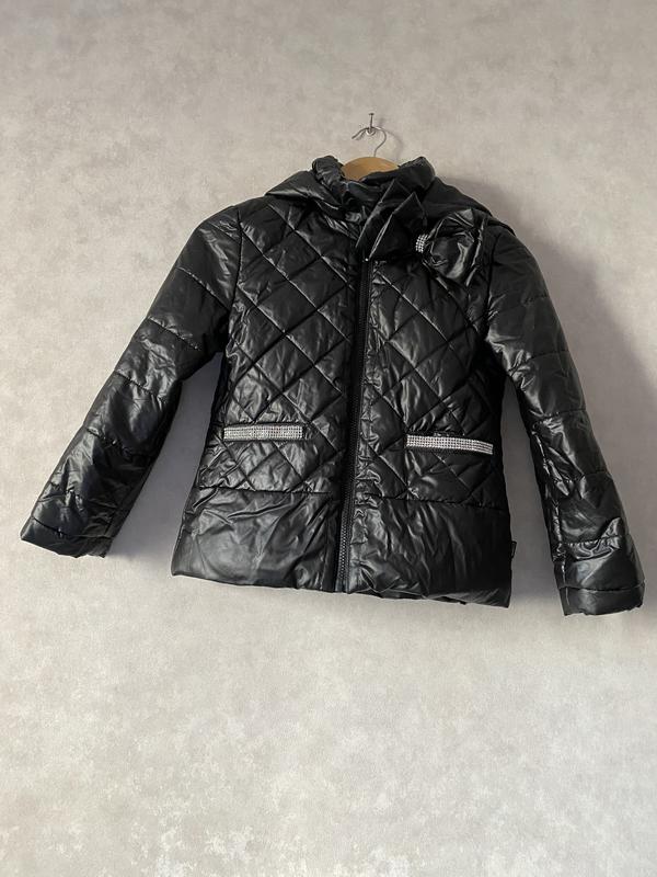 Есть капюшон, карманы, декор в виде банта спереди. Состояние отлично! Но есть нюанс – оторвалась заклепка (застегивается у шеи, в мастерской смогут починить). На девочку 8 лет, рост 130см. Замеры: Длина - 52см Ширина - 40см Длина рукава - 46см Ширина рукава – 15см Была куплена больше, чем при 3000 грн