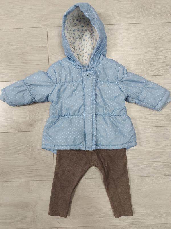 Куртка на девочку. Фирма next. Размер 6-9 мес. Но будет дольше. Замеры: рукав от плеча: 22 см., от горловины - 28 см., на рукаве резиночка. длина спереди: 30 см., по спинке:37 см. (спинка удлинённая). Ширина в груди: 24 см. Подкладка-хлопок