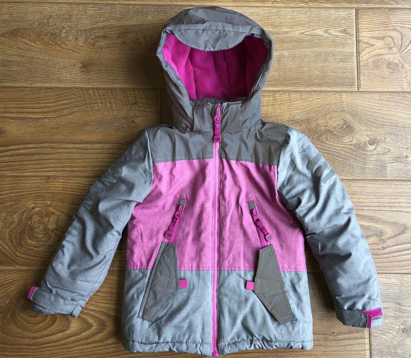 Дуже класна куртка, тепла. Має регулюючі манжети на рукавах, захисну спідницю в середині, замки всі оброблені і захищені від вологи та вітру. Капюшон не знімається. Вся світловідбиваючими вставками, про безпеку дитини в темну пору дня можна не переживати. Мала надірвалася була біля капюшона, але все гарно зашили на фото 7-8 показала, нічого не видно. Рукав від плеча 42, по внутрішньому шву 29, довжина 46, ширина по грудях 37, ширина знизу 39-40. Дивіться всі мої оголошення, економте на пересилці!