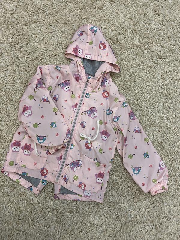 Курка для дівчинки рожевого кольору із малюнками в гарному стані на 3-4 роки! Є невелика пляма, на фото видно! Заміри: Довжина-42; З грудей-35; Довжина рукава-34,5. За необхідності скину додаткові фото та заміри! Відправлю.