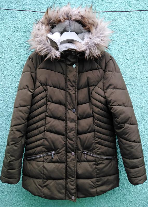 Продам курточку кольору хакі в ідеальному стані. Тепла, зручна. Розмір пише 13, 14 років. Може бути і S. Заміри : Довжина від плеча 71 см. Рукав від плеча 60 см. Талія 47 см.