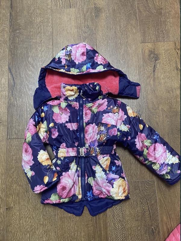 Курточка сделана паркой. Крюшон съёмный на молнии. Поясок вшит. Состояние хорошее. Длина спереди 41,сзади 47. Рукав 34,а полностью 44.