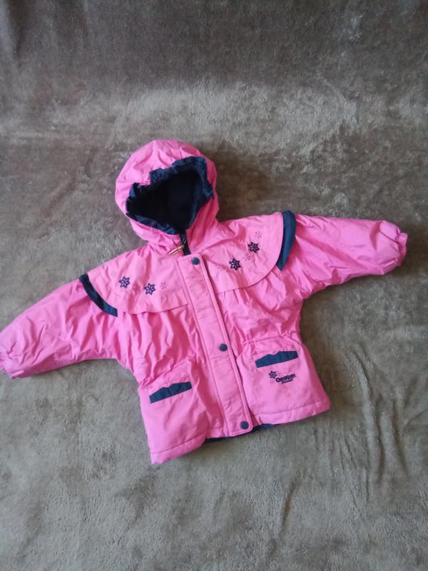 Куртка 2 - 3 года . Длина от плеча - 42 см , рукав от капюшона - 38 см , ширина под рукавами - 40 см . Замок рабочий , кнопки все на месте . Талия и капюшон на резиночке , что очень хорошо в ветреную погоду . На левом кармане пятно . При желании можно сделать нашивку .