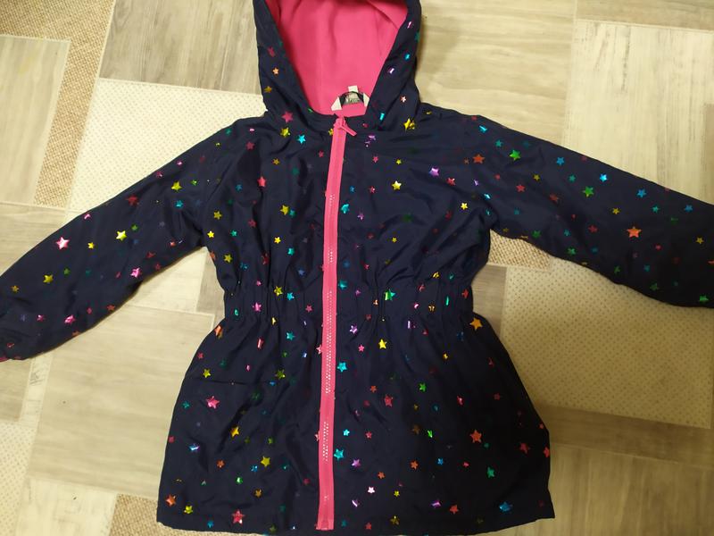нарядная ветровка девочке .верх плащевка с сверкающими звёздочками .внутри флиска .манжеты и талия на резинке длина 51 см в груди 37 рукав 37 см возраст3-4 лет рост 104 см .новый сток без следов ношения на внешний вид .оплата и почта любые