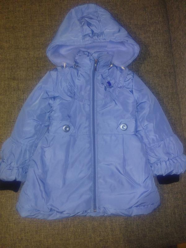 Волошкова куртка на дівчинку років 3-4. Манжети рукавів трішки в катишках, візуально не помітно. Замочок туго защіпається, можливо треба поміняти бігунок. Сам замок нормальний, без переломів. Капішон відщіпається. На теплу зиму, на холодну осінь. На флісі. Наповнювач - синтепон. Довжина - 53 см. Півобхват грудей - 33 см. Довжина рукава з манжетом - 42-43 см. Ширина плечей - 31 см.