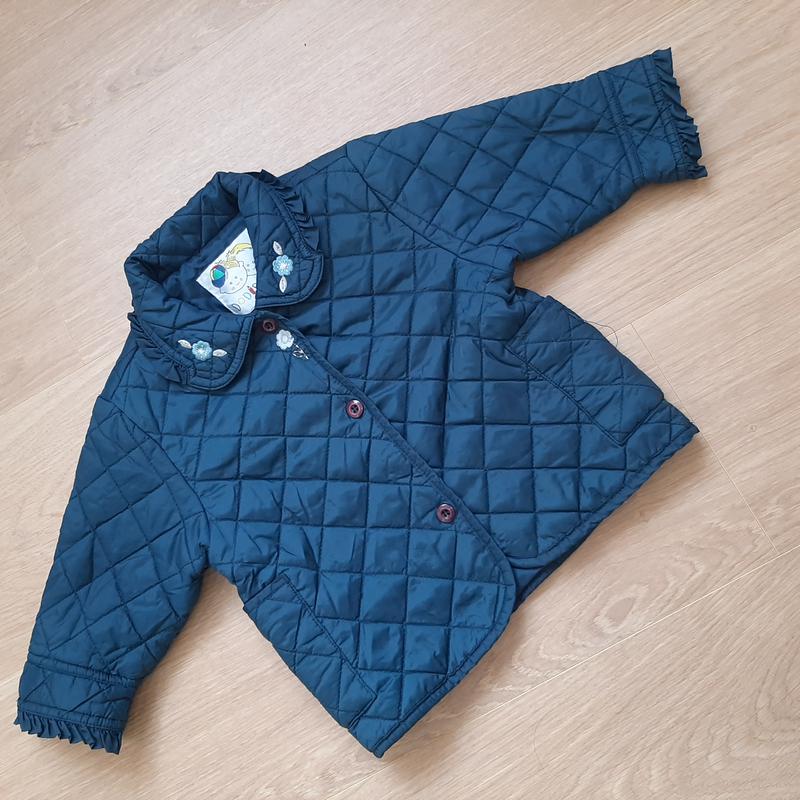 Довжина куртки без комірця 36 см, довжина рукава від плеча 25 см, тепла осінь та весна, на 12-18 міс.