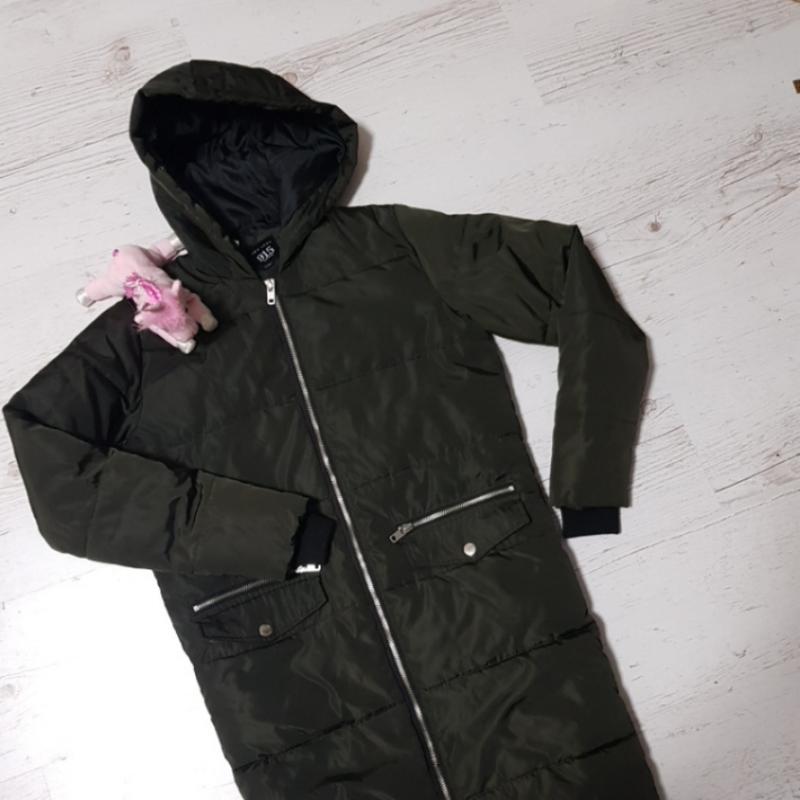 Класна, стильна, довга куртка для осені, зими. Колір хакі. Замок двосторонній, 2 кишені на кнопках. Рукав на манжеті