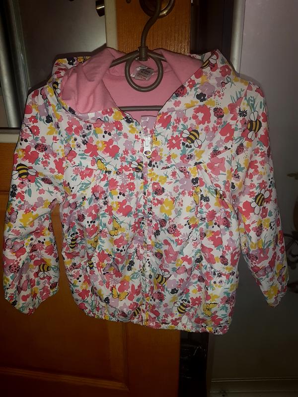 Яркая курточка на рост 98-104см. Очень красивая яркая расцветка. Длинна изделия 42см, плечи 28см, ширина подмышки 37см, рукав от плеча 37см.