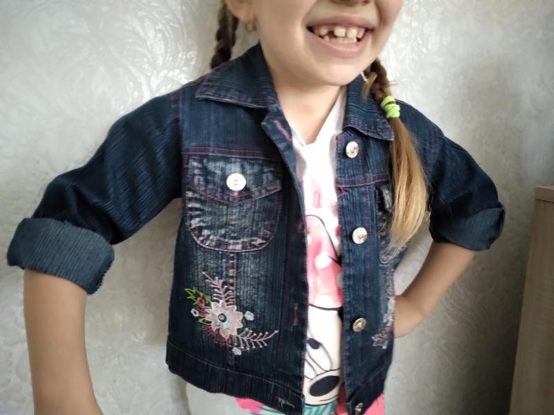Джинсова курточка з довгим рукавом на 6-7 років, в ідеальному стані, укорочена.