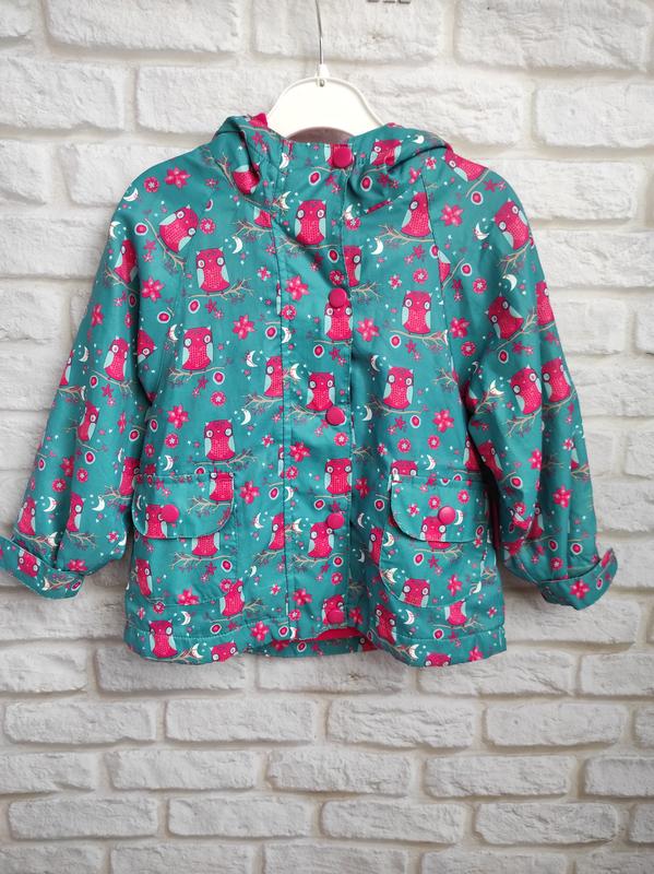 Очень красивая ветровка на флисовой подкладке. По бирке 1,5-2. Состояние отличное, но есть нюансы (стрелка, потёртости на резинке - фото). Длина 41, ширина 34, рукав от шеи 41