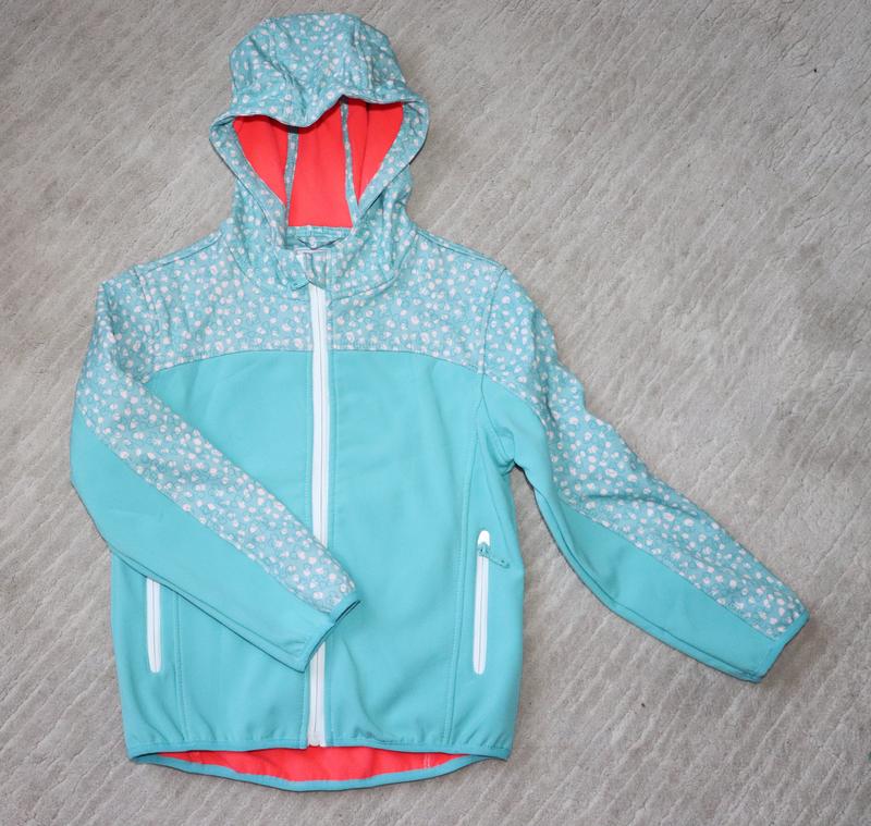 Красива яскрава курточка-вітровка софтшелл, утеплена тонким флісом.У отличнейшем стані. За бирці на 128 зростання довжина від верху плеча-50/53 рукав-47 ПОГ-40