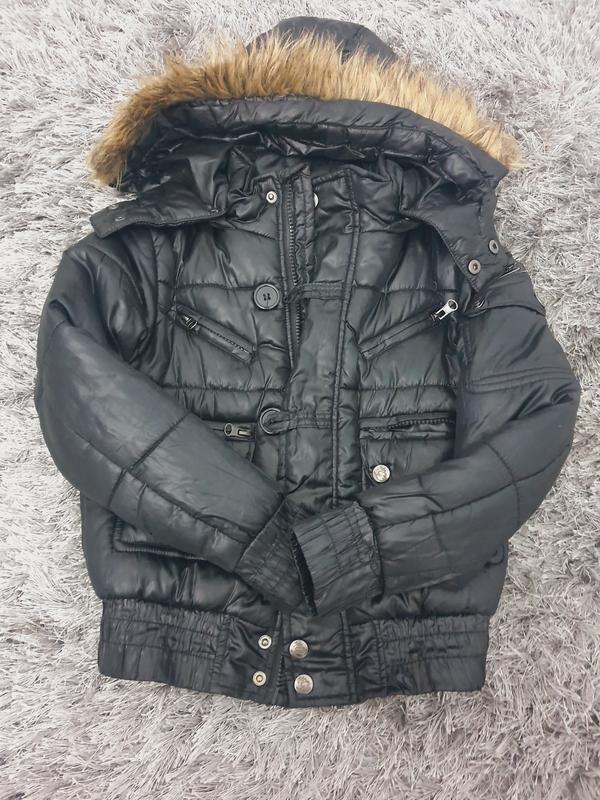 Красива, весняна курточка. Капішон знімається, мєх теж знімається. Мєх штучний.