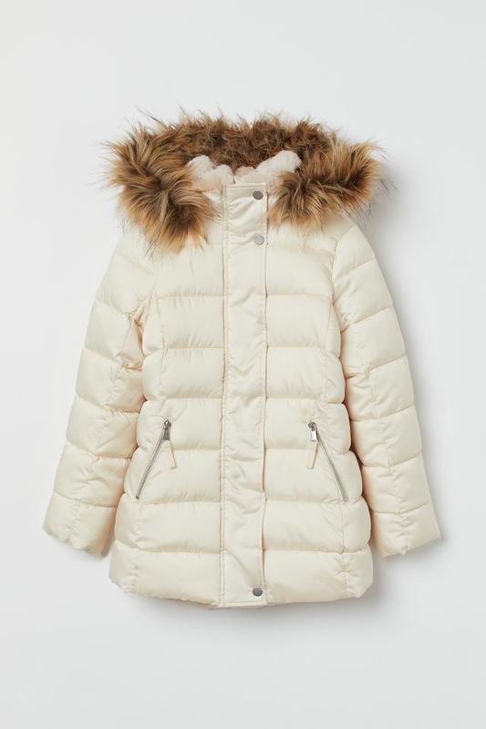 Курточка с меховым воротом Удлиненная модель- пальто Стеганая прошивка Высокая горловина Защита молнии и подбородка Капюшон съемный Мех отлично расчесывается Есть 2 кармана Подкладка ткань полиестер 🏷H&M 🔸11-12 лет/152 р. 3 Длина 70. ПОГ 47. Рукав 58