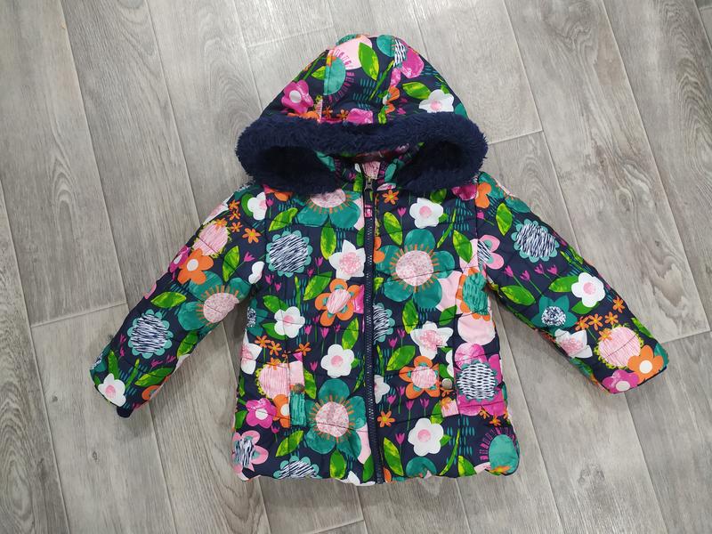 класна дуже тепла куртка, пуфер на бирці вік 2-3 роки, але реально підійде і на 4 роки Ширина куртки 35 см Довжина 44 см Рукав від коміра 41-42 см