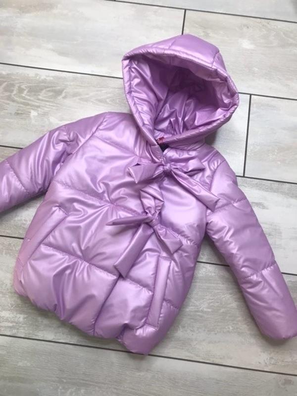Куртка деми с капюшоном на молнии, ткань жемчежная плащевка , утеплитель синтепон 150, есть кармашки, украшено бантиками. цена 650грн длина/рукав/пог 86-39/30/33 92-41/33/34 98-43/35/35 104-44/37/39