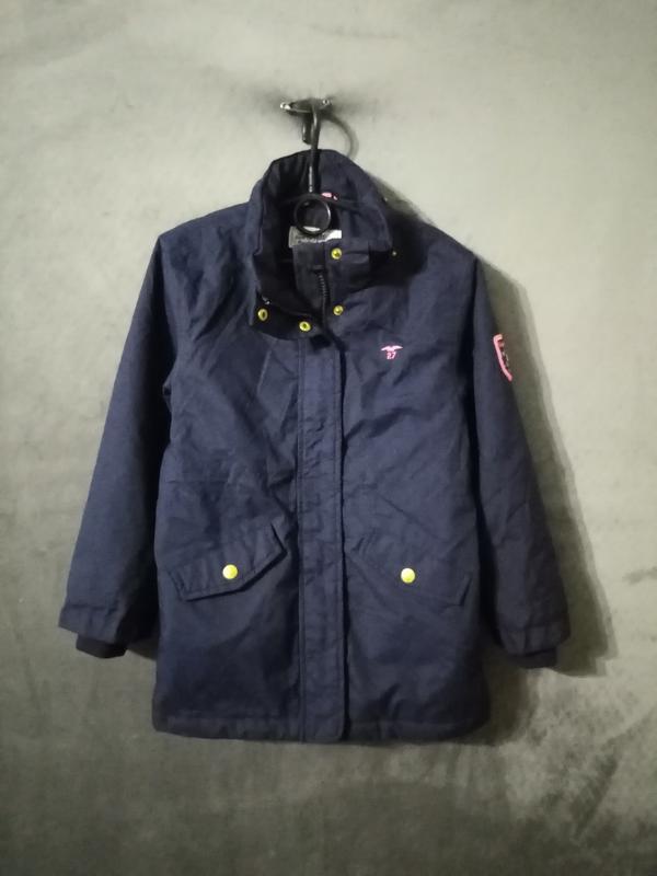 Классная куртка для девочки Hampton Republic. Фасон прямой свободный. Удобная и комфортная. Смотрится красиво. По-бокам кармашки на кнопках. Застегивается на молнию и кнопки. Внутри можно затянуть на талии резинку. Непродуваемая ткань. Размер: на рост 122 см. Возраст - 7 лет. ПОГ - 41,5 см. ПО по низу - 41,5 см. Длина - 58 см. Длина рукава от плечевого шва - 46 см. с внутренним манжетом Состояние идеальное. Единственное - нет капюшона. Есть много других интересных
