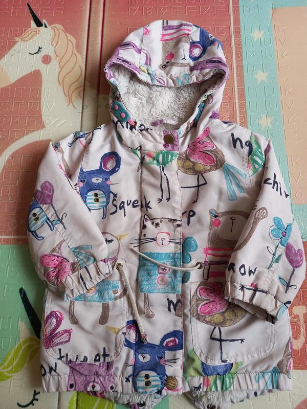 Курточка демі next, розмір 86 , але буде довше , всередині утеплення * ( крім рукавів ) , стан хороший але є декілька плям, на фото ближче сфотографувала . заміри на фото