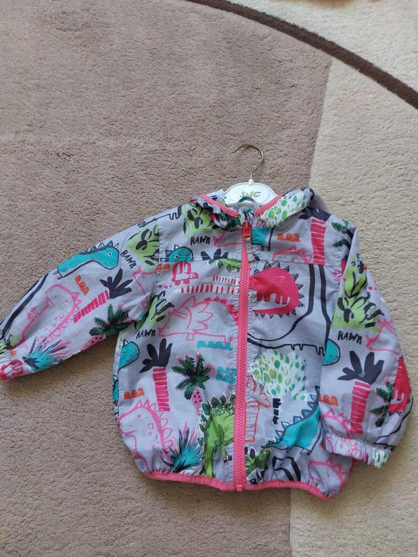 Класна вітровка на підкладці для дівчинки 1,5-2 роки, без нюансів. Має на спині карман, куди можна згорнути всю куртку. Дуже якісна і непромокаєма. Заміри на фото.