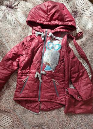 курточка- жилетка осінь-весна, принт сова з сумочкою на 3 роки 98см. у курточці відстібаються рукава і капішон, кармани на замочку, сумочка в комплекті