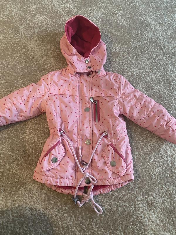 Курточка вітровочка на дівчинку всередині на флісі легенька ,рукавчик від плеча 29 см, від шиї 37, плечі 27 см, в грудях напів обват 30 см, довжина перед 40см, взаді подовжена 42-43 см вона ,як на зараз супер