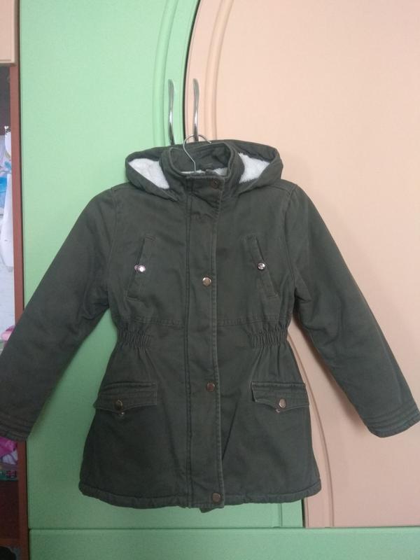 Куртка -парка в гарному стані на дівчинку 6-7 років, по бірці зріст 116-122см. В поясі вшита резинка. З недоліків потерті металеві частини кнопок, показала на останньому фото. Заміри скину кому цікаво.