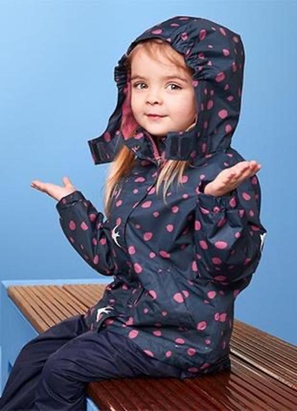 На вулиці погана, дощова погода? Тим краще, возитися з водою та брудом набагато веселіше - за умови, що у дітей є підходящий одяг. З цієї термозащитной курткою ви в будь-якому випадку захищені від вітру і дощу, а дихаючий верхній матеріал з герметичними швами і екологічно чистої просоченням ecorepel® забезпечує приємний клімат тіла - ідеально підходить для активних дітей. М'який і теплий: дитяча куртка з підкладкою з приємного м'якого і теплого микрофлиса, манжети можна регулювати по ширині за допомогою липучки, а капюшон можна розстебнути, коли не йде дощ. Відбивачі забезпечують кращу видимість. Колір: темно синій у рожевий горошок Матеріал: 100% поліестер Вітрозахисний, водонепроникний і дихаючий З екологічно чистої просоченням ecorepel® М'яка тепла підкладка з микрофлиса капюшон можна відчепити Верхній матеріал витримує товщину води до 3000 мм. **************************************** Колір: як на фото ПОГ: 41 см Довжина рукава: 45см, Довжина: 48-51 см **************************************** Заміри могут мати похібку вимірювання ± 1/2 см Шановні ПОКУПЦІ! Одяг бренду TCM Tchibo практично весь без паперових етикеток, за рідкіснім вінятком, и зі зрізанімі частково або Повністю внутрішнімі біркамі и ярлики зі складом тканини та іншімі данімі. Опис лоту - це переклад через онлайн-перекладач з німецької мови на українську, взятий з офіційного сайту TCM Tchibo. Бірки зрізають на ліцензійних орігінальніх промовах. Змушує це делать сам Бренд. Це абсолютно новий одяг!