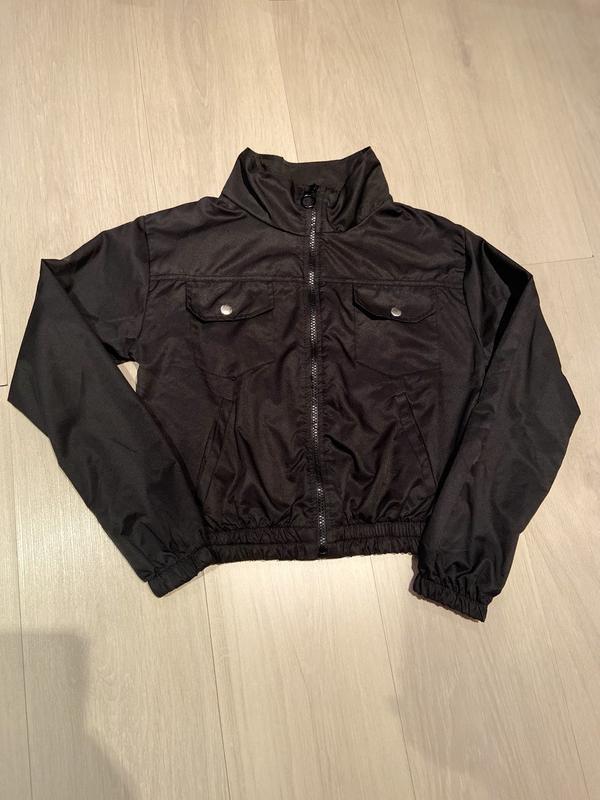 Куртка в гарному стані, без підкладки, якраз на літні вечори, всередині мякенька. Розмір с хс. Заміри: плечі 42 см, ширина 46 см, довжина 46 см, рукав 54 см.