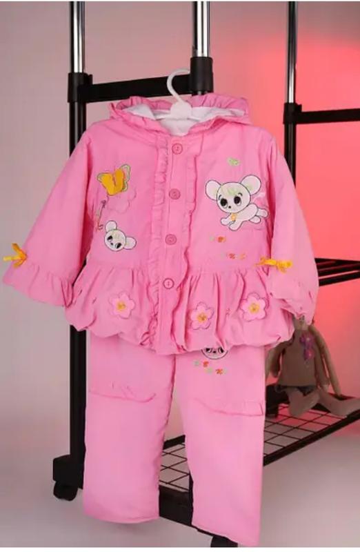 Детский костюм для девочки весной, осенью. Костюм состоит из куртки с капюшоном и штанишками. Страна производитель: Китай Материал: плащевка Состав: синтепон 50 Цвет: Розовый ЗАМЕРЫ: ВЕРХ Размер: 8 Ширина плеч: 27 см. ПО груди: 30 см. ПО талии: 30 см. ЗА бедер: 34 см. Длина рукава: 25 см. Длина изделия: 33 см. Размер: 12 Ширина плеч: 29 см. ПО груди: 34 см. ПО талии: 34 см. ЗА бедер: 38 см. Длина рукава: 27 см. Длина изделия: 35 НИЗ Размер: 8 ПО талии: 17 см. ЗА бедер: 32 см. Длина изделия: 48 см. Длина шага: 26 см. Посадка: 17 см. Размер: 12 ПО талии: 19 см. ЗА бедер: 34 см. Длина изделия: 50 см Длина шага: 30 см. Посадка: 19 см.