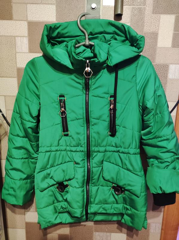 Виробництво - Україна. Куртка для дівчинки на осінь. Одинарний синтепон. Напівобхват під проймою - 42 см, Напівобхват по низу куртки - 46 см, Ширина плечей - 34 см, Ширина плеча - 8 см, Довжина рукава - 52 см, Довжина куртки - по переду 58 см, спинки 62 см)Дуже гарна фурнітура,застібки всі працюють,капюшон з'ємний)
