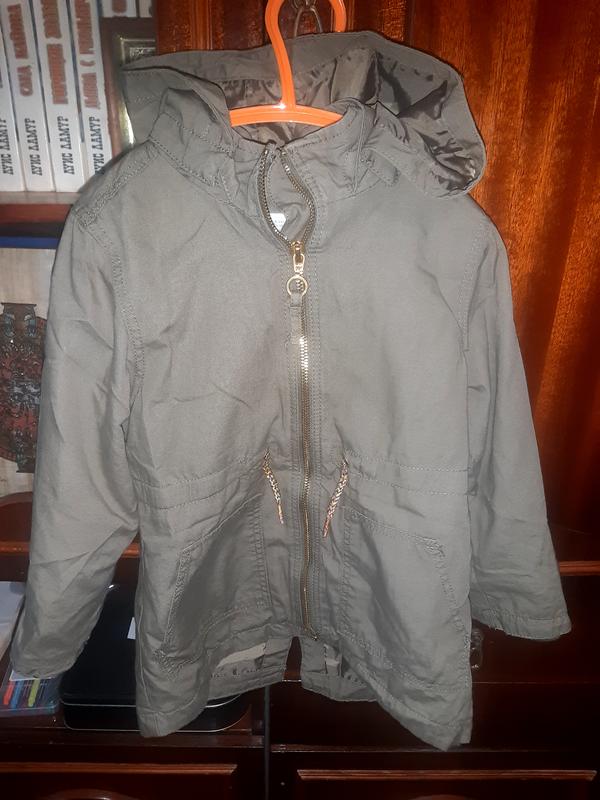 Отличная курточка на рост 98-104см. Длинна спереди 46см, сзади 51см, плечи 28,5см, рукав от плеча 36,5см, ширина подмышки 34см. Состояние новой.Капюшон отстегивается 46.