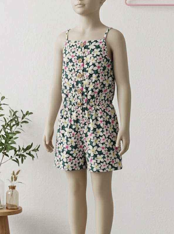 ромпер белые цветы спереди на пуговицах тонкие бретели фирма Young dimension 9 10 лет хлопковые идеальное состояние обхват груди 31 -47 полуобхват талии 25-48 полуобхват бёдер 52 -63 неплохо тянется