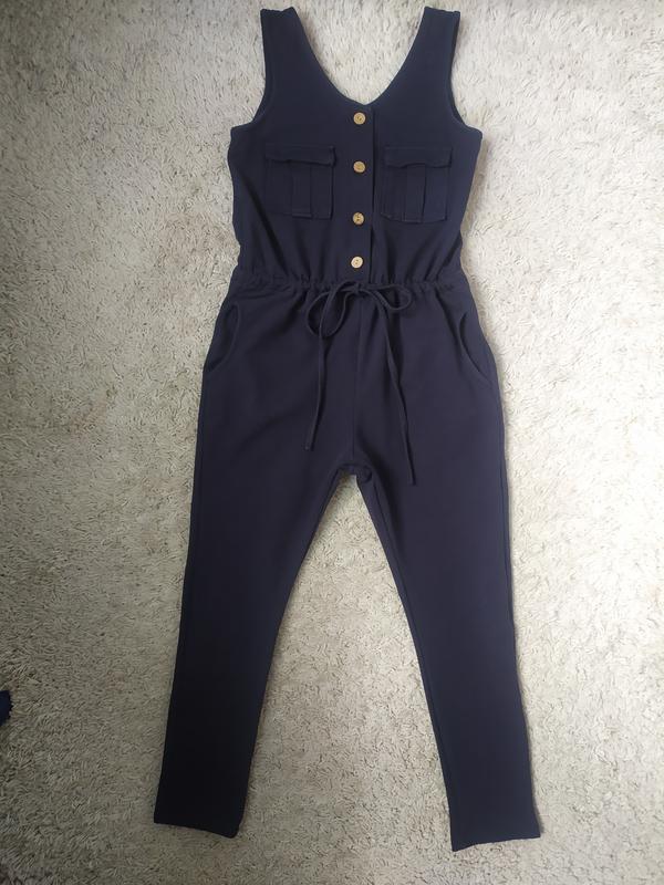 Продам комбинезон б/у синего цвета в хорошем состоянии.Длина от плеча до низа 122 см . от плеча.до талии 42 см.длина шага 57 см.ПОГ 40 см.4 кармана. Состав ткани:95%коттон,5% эластан.