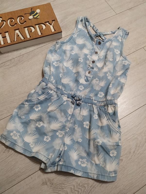 Классный комбинезон для девочки на 6-7рр. Ромпер с двумя карманчиками, пояс на резинке, спереди пуговицы. Сам материал 100%котон, тонкий, но сбит как джинс. Бренд George. Производитель Бангладеш. (19)