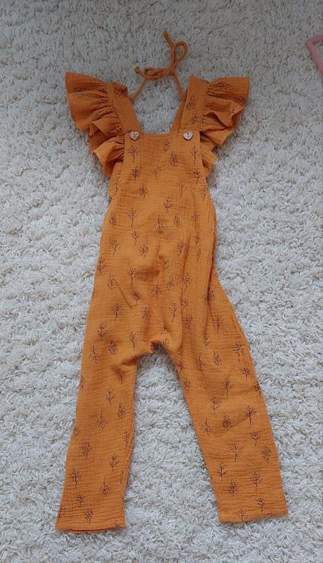 Комбінезон з мусліну у нормальному стані зріст 92-98 бретелі з плечей не спадають є зав'язки на спинці повністю довжина від плеча до низу 83см