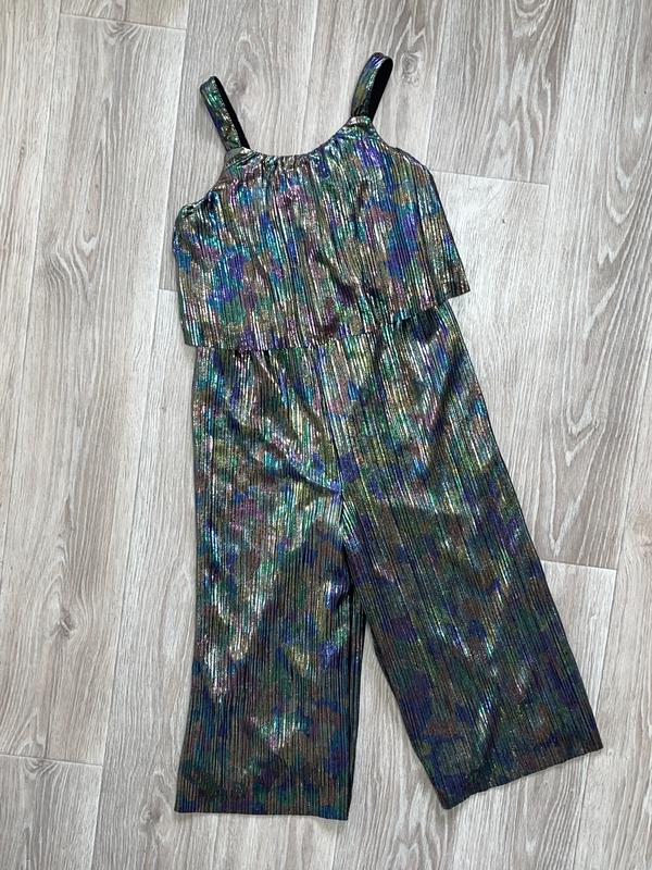 Комбинезон из блестящей ткани-жатка Подкладочная ткань полиестер Состояние нового 🏷️TU 10 лет/140 Длина 103(63). Шаг 44. ПОГ 36