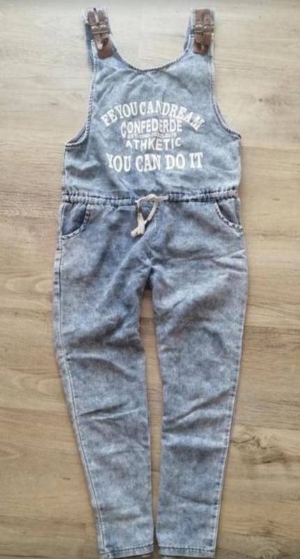 Очень крутой комбезик Легкий, тонкий джинс. Размер указан 10 лет. Полностью длина без бретель 104 см Длина штанки от пояса 70 см, шаг 53 Ширина от проймы до пройма42 см Цвет: Белый, Голубой