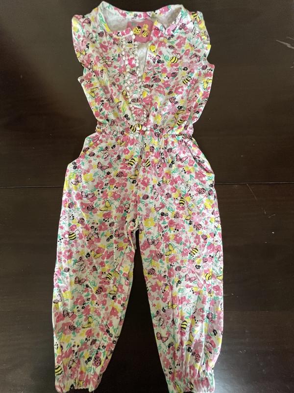 Классный, яркий комбинезон на кнопках, для красавицы 2-3 рочков, хлопковый и удобный.
