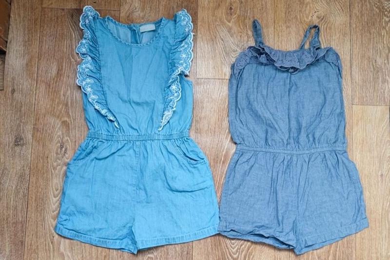 Цена указана за оба, поштучно 100 грн за 1 шт. Ромпер под голубой джинс на 7 лет (маломерит), 100% хлопок, есть 2 кармана, сзади на пуговицах, состояние очень хорошее, длина от плеча 56 см, длина от плеча до между ног 53 см, ширина под ручками 32 см, в поясе полуобхват 25-32 см (резинка), шаг 5,5 см. Ромпер под темно-серый джинс ТМ Next на 6 лет (рост 116 см), 100% хлопок, состояние хорошее, без дефектов, длина от плеча 60 см, длина от плеча до между ног 57,5 см, ширина под ручками 31 см, в поясе полуобхват 28-33 см (резинка), шаг 4,5 см. Пересылаю.