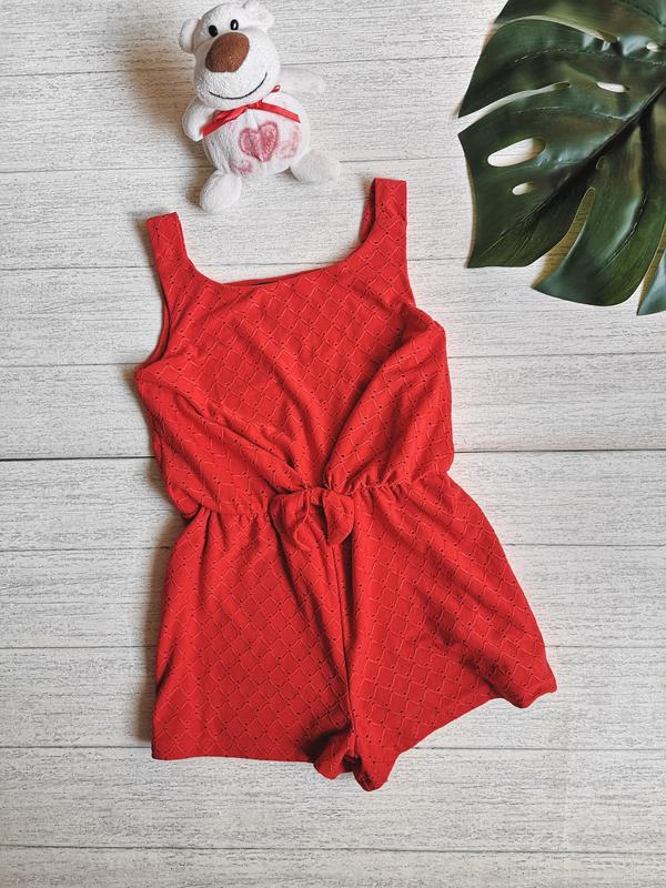 Яркий алый комбинезон. Красиво тянется. Замеры : длина до пояса 29, длина от пояса 23, ширина по груди 30, пояс 26 (резинка), ширина штанины 26. Есть подкладка, лямки не регулируются.