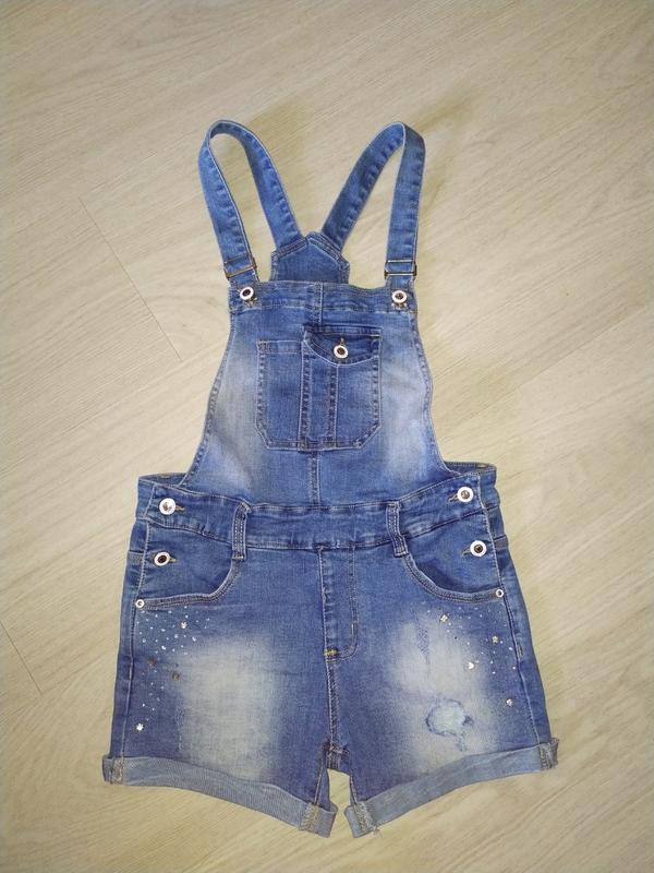 Стильный джинсовый комбез для девочки, р. 24 (7-10 лет), замеры на фото. Стан - идеальный