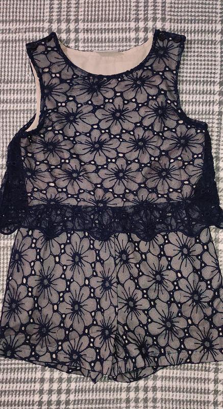 Цвет темно-синий ,подкладка-бежевая ПОГ 32 ПОТ 28, тянется до 32(на резиночке) ПОБ 38 Длина от плеча до низа 55,до талии 29