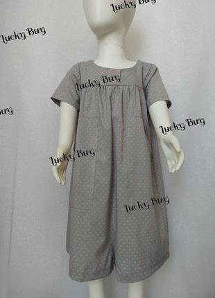 250202 Детский комбинезон в горошек Летний комбинезон, серого цвета. Принт горошок. Есть карманы. На спине скрытая молния. Софт Размер: M, L, XL, XXL М: Ширина плечей 24 см Но груди 34 см Но талии 36 см Но стегон 46 см Длина рукава 13 см Длина изделия 58 см *** Л: Ширина плечей 25 см Но груди 36 см Но талии 38 см Но стегон 48 см Длина рукава 13 см Длина изделия 60 см *** ХЛ: Ширина плечей 26 см Но груди 38 см Но талии 40 см Но стегон 50 см Длина рукава 13 см Длина изделия 62 см *** ХХЛ: Ширина плечей 27 см Но груди 40 см Но талии 42 см Но стегон 52 см Длина рукава 13 см Длина изделия 64 см