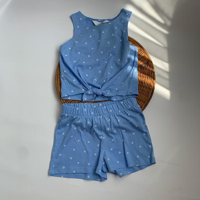 Уявіть літню прогулянку вашої дівчинки в стильному костюмі від H&M! Зробіть її літо яскравим та комфортним💙 🌈 Колір: синій з вишеньками 📏 Розмір: 116 Замовте зараз у Direct📩Відправлення в день замовлення!