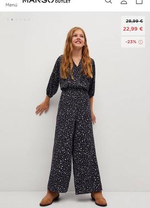 Комбинезон Mango 100% viscose Очень красиво садится, пуговицы типа на запах Пояс резинка Плечи 36см ПОГ 49 см Пот 30-47 см (резинка) Рукав 47 см (четвертый резинка) Ноговике от пояса 90 см Крок 60 см По ноговиці внизу 33 см Длина от плеча до низа 137 см